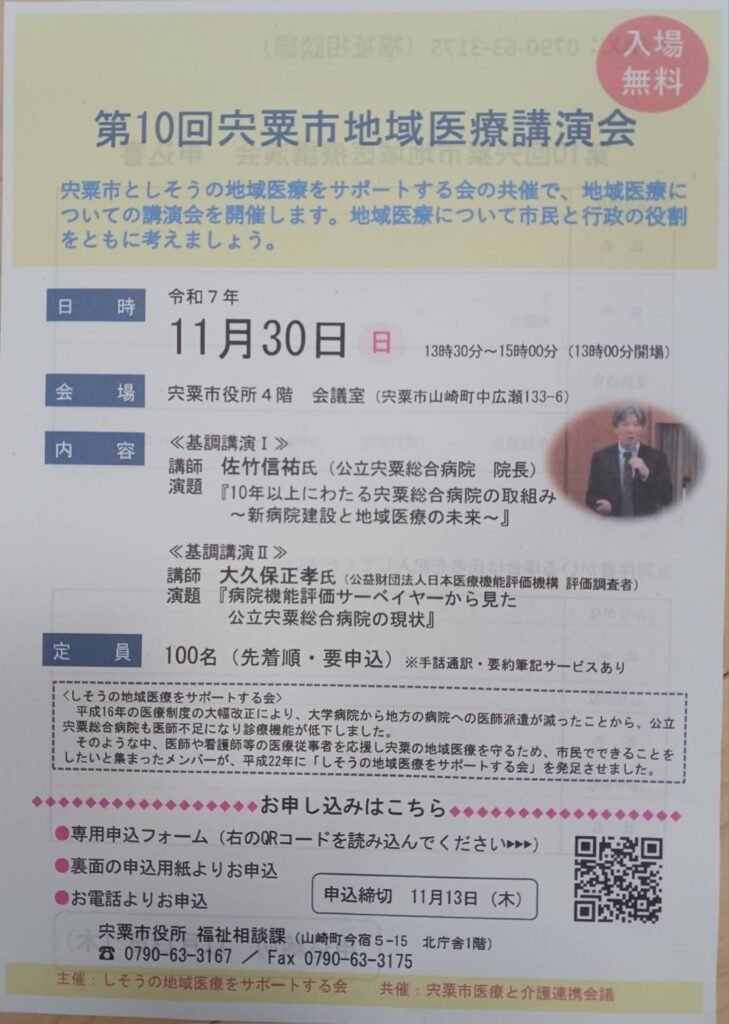 第10回宍粟市地域医療講演会のチラシです。(ずれていてごめんなさい)